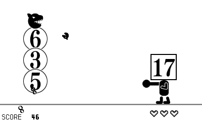 Sum Totaled Battle, a game that came from Brain Age Express: Math Edition! In this game, you add up the numbers mathematically. It’s all addition questions and you don’t have lots of time to answer them. The levels get harder as you go. There are 5 floors and the movements get faster and faster. You have to answer every question swiftly. If you get three hits, then it’s game over. If you complete the five floors, you win the game and claim the points you’ve held all the way.