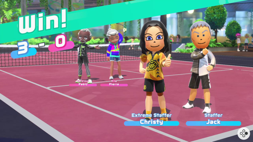 Yes! We got another moment to share on NSS as well. Christy along with her brother, played a Full 3 Game Match of Tennis Doubles. While her brother tried to help, sometimes he would make a few errors, but Christy was there to save the whole thing for her team, as they won in straight sets. Nice to see the pair play together in NSS once again!