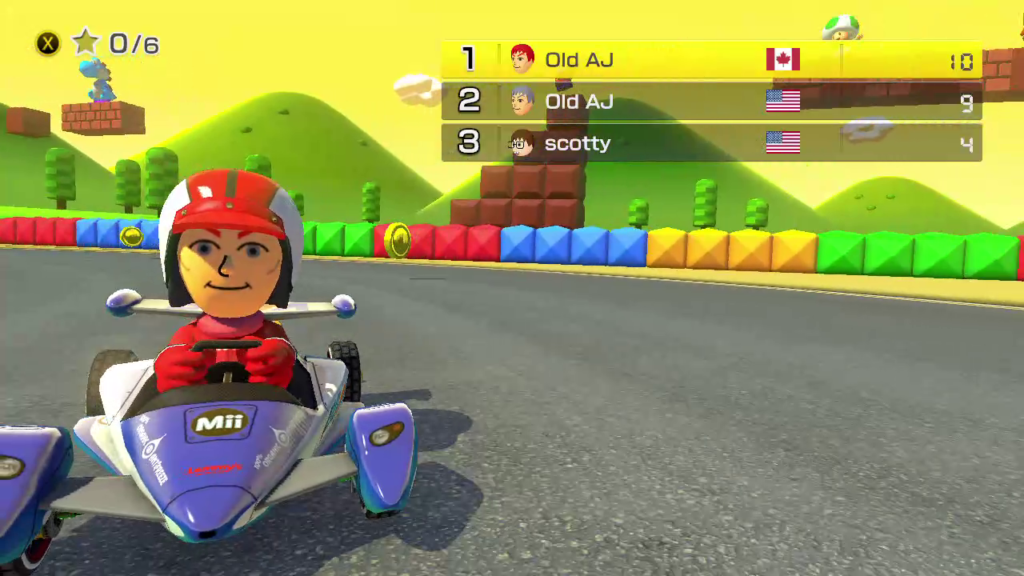 In the Final Race of the day, which took place in Mario Circuit 3, it was a race to the flag. The guest driver, scotty, managed to break into 1st place despite being overtaken a couple of times. Mr B.F.F said it didn’t matter if I was going to get first, as both leaders a tied prior to coming in and having +2 points, Mr B.F.F needed to finish as well as he could. He rebounded to 2nd, with 3 Mushrooms to speed him up on the line and therefore surpassing Quintin, the driver over to the Flag. Once after the hits and the increasing speed, Mr B.F.F reached just enough to finish with a score of 10 – 9.