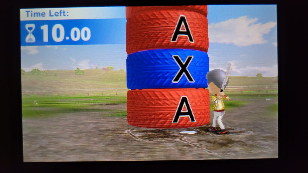 Mr B.F.F called this game, where it’s an actual and true visit to some of the Wii Sports Baseball elements you see in the game, only this time, you hit the A Button at the precise timing. The only game that’s gets you warmed up and physically uses your body is the Gear Games, which has a game (with the gyroscope) where you have to tap the ball on the bat, even all around including balancing the ball for a few seconds. We’ll explain that in the next article.