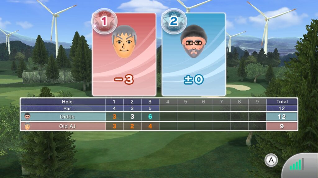 Meanwhile on the search to rematch with OldGuy, Mr B.F.F had found new a player online for which they became friends months laterr on the Wii U. First player on the Top Left Image first faced off as he was ranked Level Star 6, time of the play. Mr B.F.F as the Top Seed, was on complete focus mode and dominated the first two holes. He extended his score by playing it safe on the 3rd and carefully putting for a Birdie. This would leave the Canadian a Perfect Score in the Orange. Our runner-up saw issues in form and would score a Bogey in the 3rd. He finished with -+0.